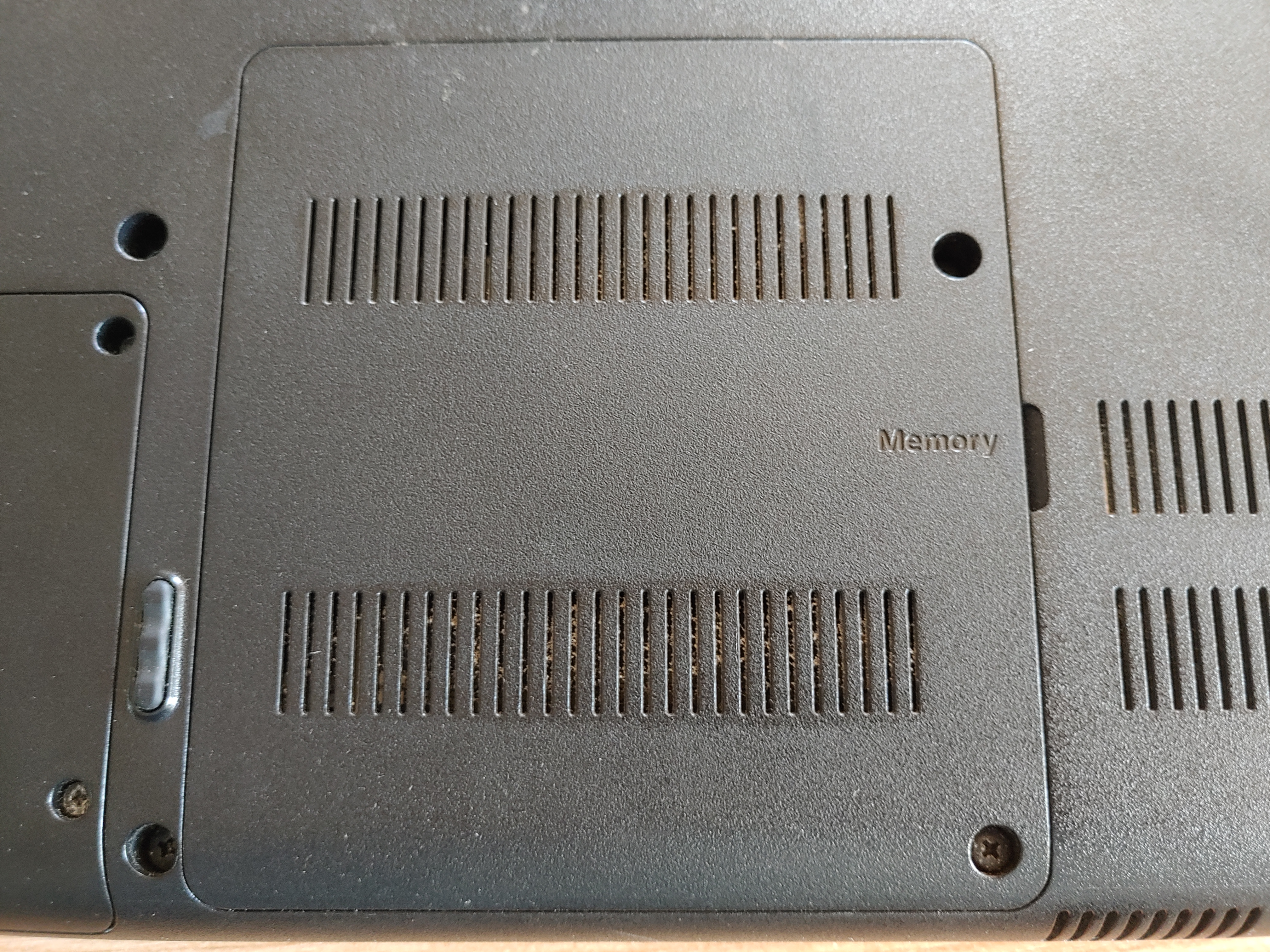 노트북 뒷면의 Memory이라고 기재된 부분의 나사를 풀어 덮개를 열어야 합니다.