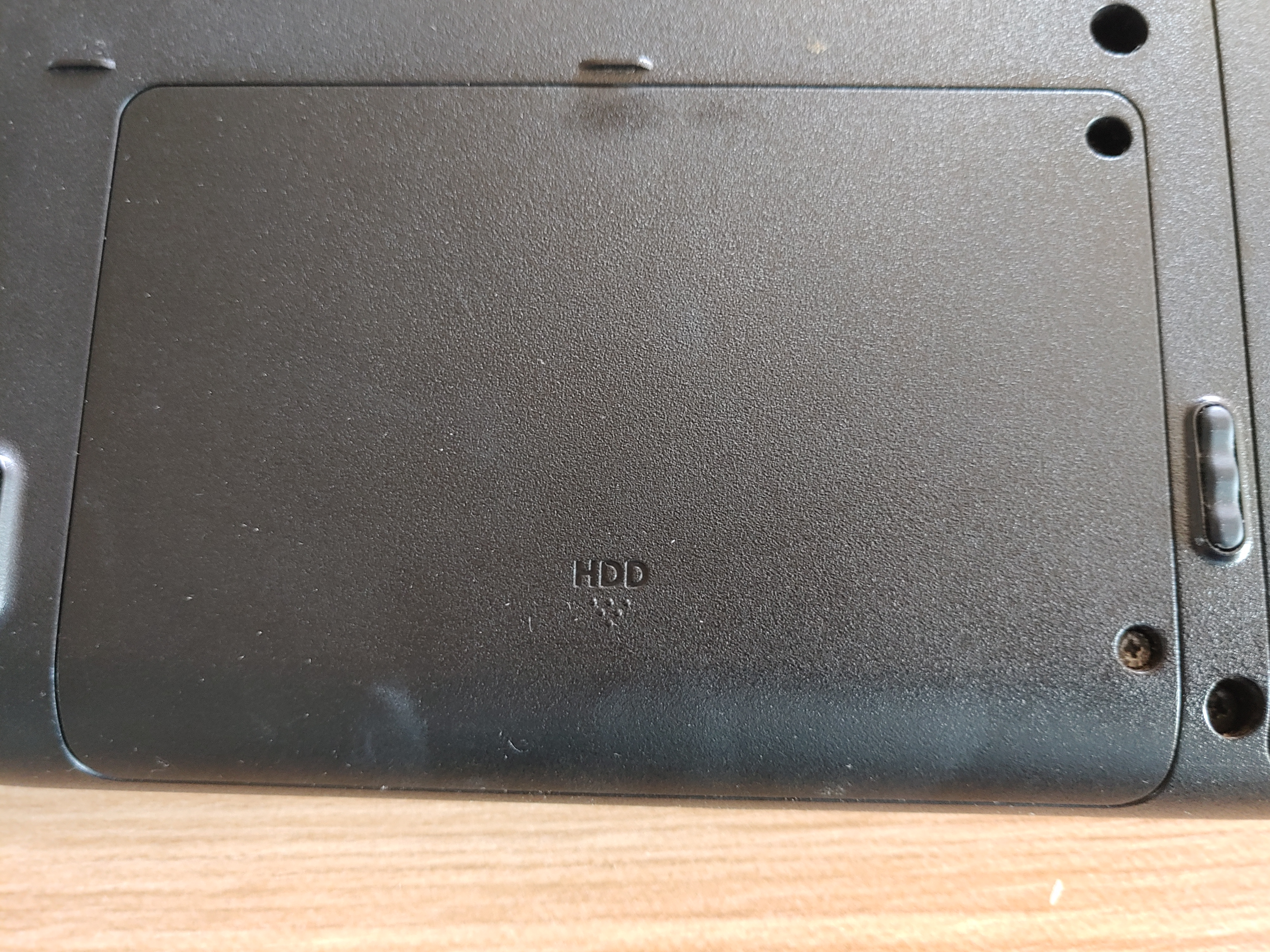 노트북 뒷면에 HDD라고 표시되어 있는 부분의 덮개를 나사를 풀어 열어줍니다.