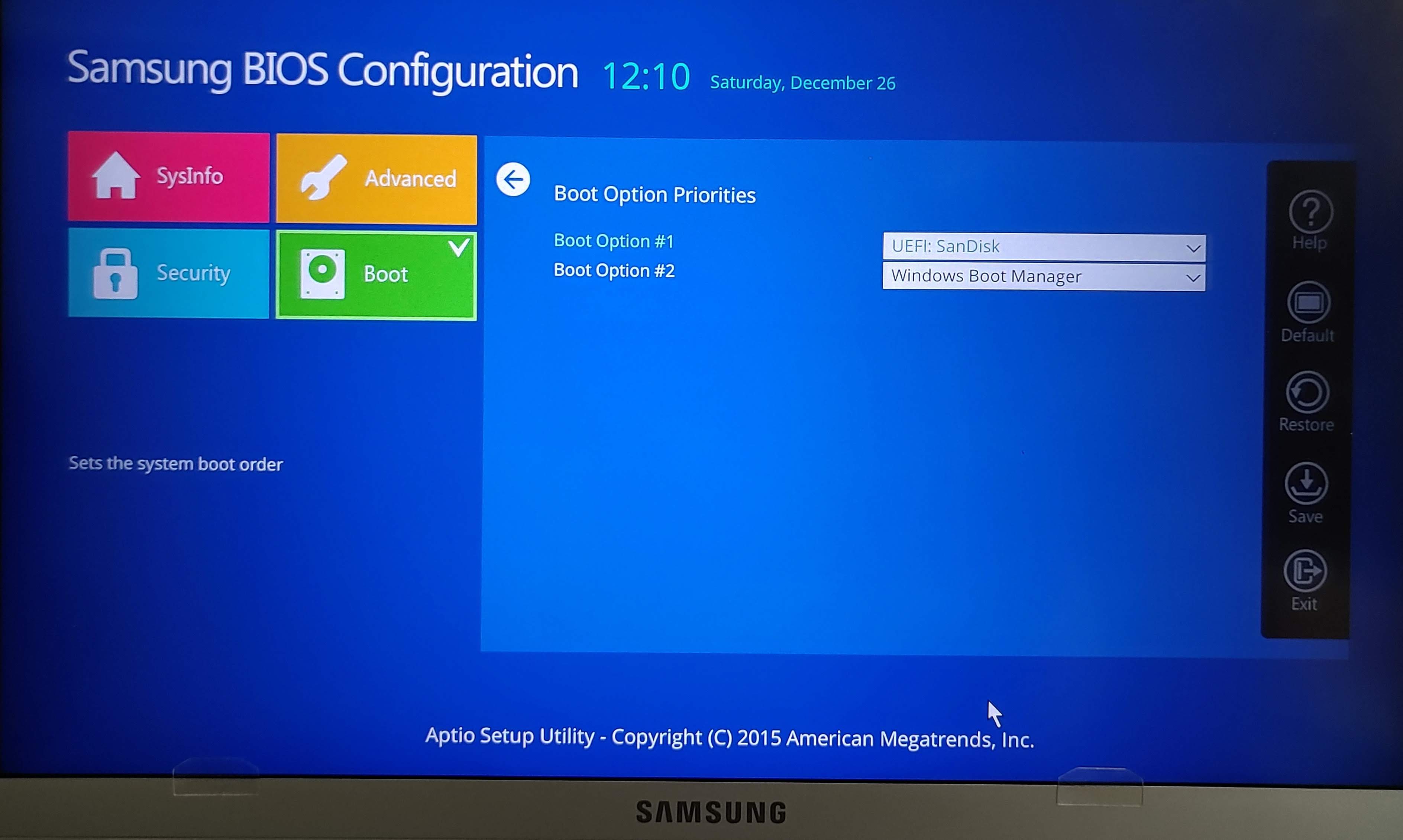 BIOS에 진입한 후 위 사진과 같이 부팅 순서를 변경해 줍니다.