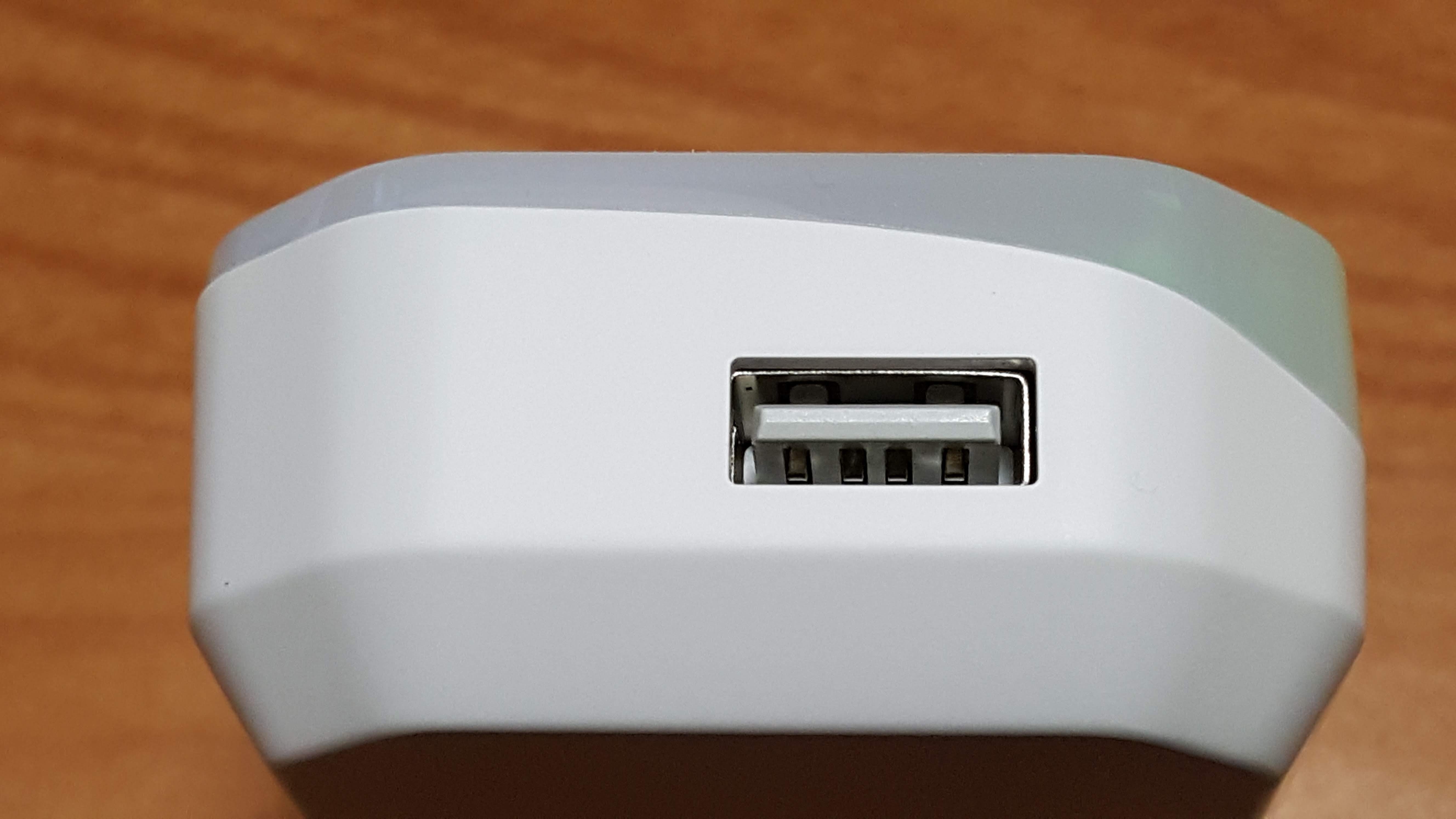한쪽 측면에는 USB 충전 케이블을 연결하여 다른 기기를 충전할 수 있는 단자가 위치하고 있습니다.